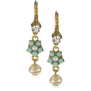 Founded by Mel Bernie in 1968, the 1928 Jewelry Company specializes in classic designed fashion jewelry, gifts, accessories, and antique reproduction jewelry. The name "1928" originated from Mel's desire to create reproductions inspired by beautiful antique jewelry. It was while looking through fashion magazines that Mel saw an article entitled, "This is the year of 1928." Each and every 1928 design uses time-honored methods of making jewelry, from the setting of stones to hand enameling. This process guarantees the quality of the 1928 jewelry product. Designers at 1928 shop antique stores and estate sales for original pieces and consult reference libraries and museums for the history of the design. Since its inception, the company has diversified and grown by successfully extending the 1928 brand into several other labels and categories. In addition to the core foundation of 1928 jewelry, the company also designs and sells under specialty brands like: 2028 a Macy's exclusive, 1928 Boutique, The Vatican Library Collection, Antiquities Couture, and 1928 Hair Jewelry. The 1928 Jewelry Company is privately owned and family managed. An atmosphere of pride and creativity at every level contributes to 1928's continued success. A company born out of inspirations from the past is now in its fourth decade of jewelry production. The quality of workmanship and the integrity of 1928 designs are legendary within the fashion accessories industry. Antique, museum inspired earrings that feature clear crystals, pearls and delicate turquoise beads set in vintage gold tone.
