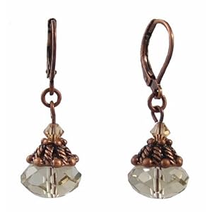 Absolutely exquisite earrings.. Super sparkly faceted crystal glass bead (10mm x 6mm) is paired with adorable antique copper beads and hung on antique copper leverbacks. Earrings measure 1/2" across and 1-1/2" tall (including leverbacks).