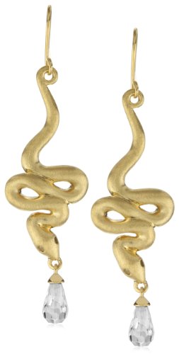 The 18k Gold Wash Earrings by Nicky Hilton add an element of mystery and glamour to your day and evening outfits. Cast in 925 sterling silver, the earring dangles are plated with rich 18k gold and brushed for a unique, earthy finish. The dangles are cut in the shape of 5-millimeter-wide snakes that curve back and forth to create a realistic silhouette. Dangling from each snake's mouth is a small faceted cubic zirconia briolette topped with a gold cap. Suspended from gold-plated French ear wires, the earrings measure a dramatic 2 inches long. These earrings are sure to get you noticed--pair them with beads or with Asian-inspired bangles and rings for a boho-chic look. Nicky Hilton has been collecting jewelry since she was a little girl. The Nicky Hilton collection was inspired by her personal collection that she has accumulated over the years. There are a lot of art deco inspired pieces and some more modern ones as well.