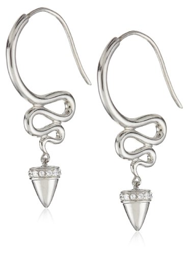 The Sterling Silver Cubic Zirconia Spike Earrings by Nicky Hilton have all the bold celebrity style of their famous designer. Cast in 925 sterling silver, these unique earrings feature a smooth finish that has been polished for a bright shine. The dangle curves gently from the wire down, forming a snake-like S-curve that measures 6 millimeters wide. The snake ends in a bullet-shaped dangle encrusted with a row of white cubic zirconia for add sparkle. Formed to hang from contiguous French ear wires, the earrings measure 1.5 inches long. With their elegant shape and hint of shine, these earrings are easy to mix and match with your favorite silver accessories. Nicky Hilton has been collecting jewelry since she was a little girl. The Nicky Hilton collection was inspired by her personal collection that she has accumulated over the years. There are a lot of art deco inspired pieces and some more modern ones as well.