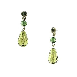 To match all of the different shades of green in your closet, you may want to check out these glistening beaded drop earrings. An olive green hued crystal sits at the post with a small bottle green bead just below it. And for one more shade of green a multifaceted pear shaped khaki colored bead completes the trifecta!