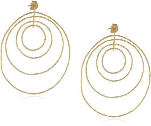 SKU Jewelry's Multi-Hoop Earrings combine an undeniable aesthetic with an almost tribal vibe. Each earring consists of four more or less concentric, yet asymmetrical hoops that look as though they were made by hand. The hoops are slender and made of shimmering, 14k gold-plated 925 sterling silver. At the top, the earrings use posts with friction backs that promise to keep these treasures securely where they belong. SKU Jewelry's Multi-Hoop Earrings combine an undeniable aesthetic with an almost tribal vibe. Each earring consists of four more or less concentric, yet asymmetrical hoops that look as though they were made by hand. The hoops are slender and made of shimmering, 14k gold-plated 925 sterling silver. At the top, the earrings use posts with friction backs that promise to keep these treasures securely where they belong.