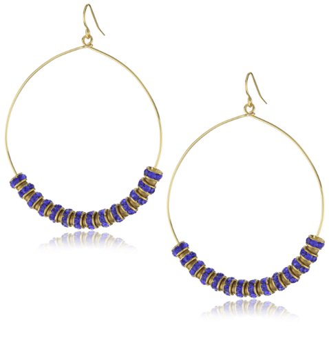 For some extra pizzazz, the Vanessa Mooney "Some Like It Hot" Hoop Earrings feature beaded accents that capture the spirit of your bright personality and style. The slim hoops offer rondelle-shaped blue rhinestone beads at the bottoms. They alternate with shiny brass beads for added glamour. The hoop earrings are 2.5 inches in diameter for a striking look in your ears. They stay in place with sturdy fishhook findings. The earrings are handmade in Los Angeles, California, for high quality craftsmanship. Vanessa Mooney jewelry is hand made in Los Angeles, CA. The pieces are created to feel unique and one of a kind.
